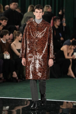 ⭐ Мужские выходы впечатлили лаконичными, но смелыми решениями: костюмы с четкими линиями и глянцевые плащи, отражающие свет так, что невозможно не оглянуться. Gucci продолжает создавать эстетику, в которой сливаются классика, гранж и футуризм.