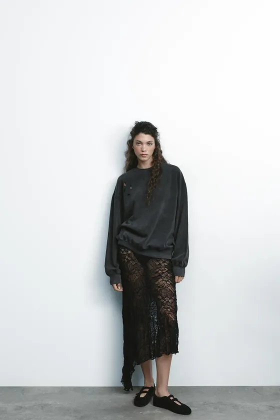 Юбка асимметричного кроя с кружевом Black | 6050/309/800