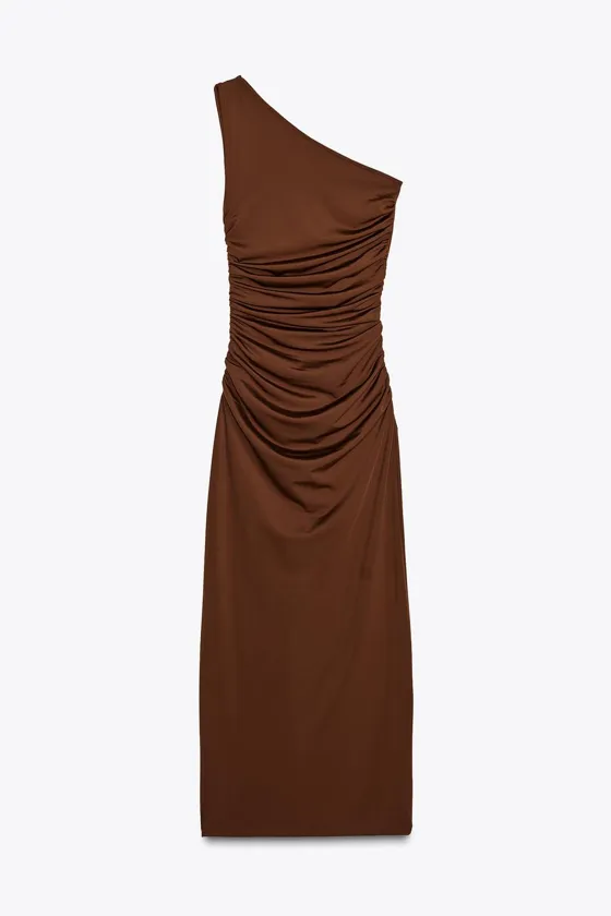 Платье асимметричного кроя из полиамида Brown | 3641/356/700