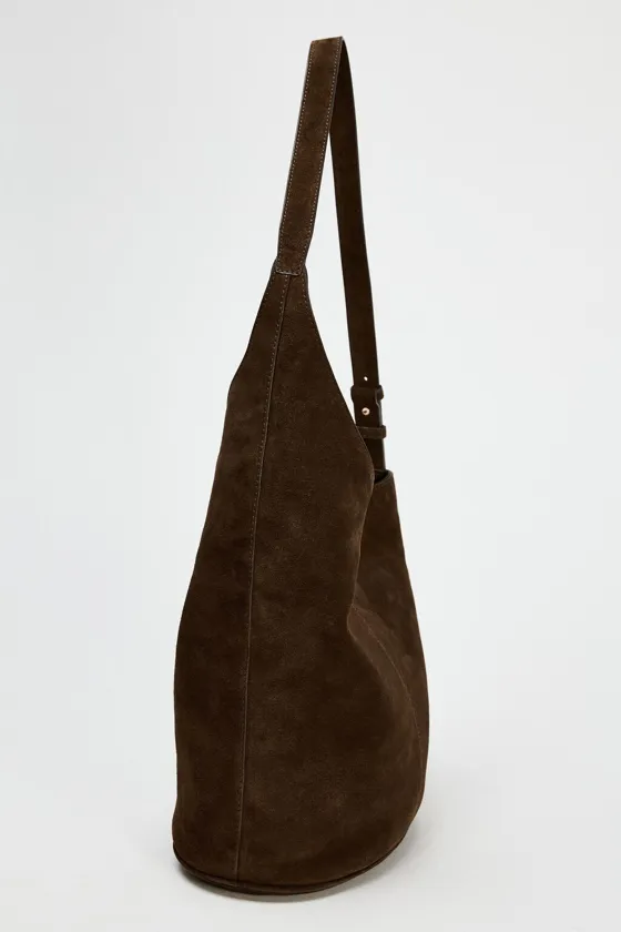 Мягкая замшевая сумка-мешок асимметричного кроя Brown | 6037/410/700