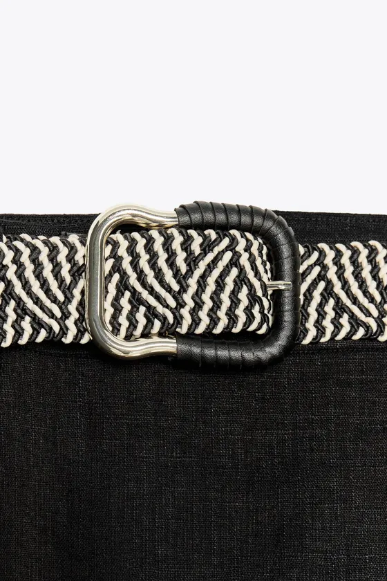 Юбка миди из смесового льна с ремнем Black | 0387/065/800