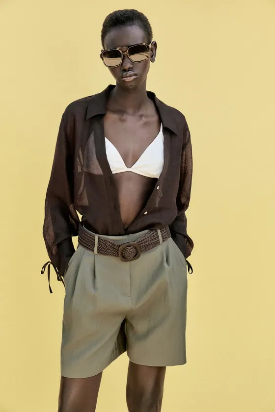 Шорты с ремнем и защипами Khaki | 8372/444/505