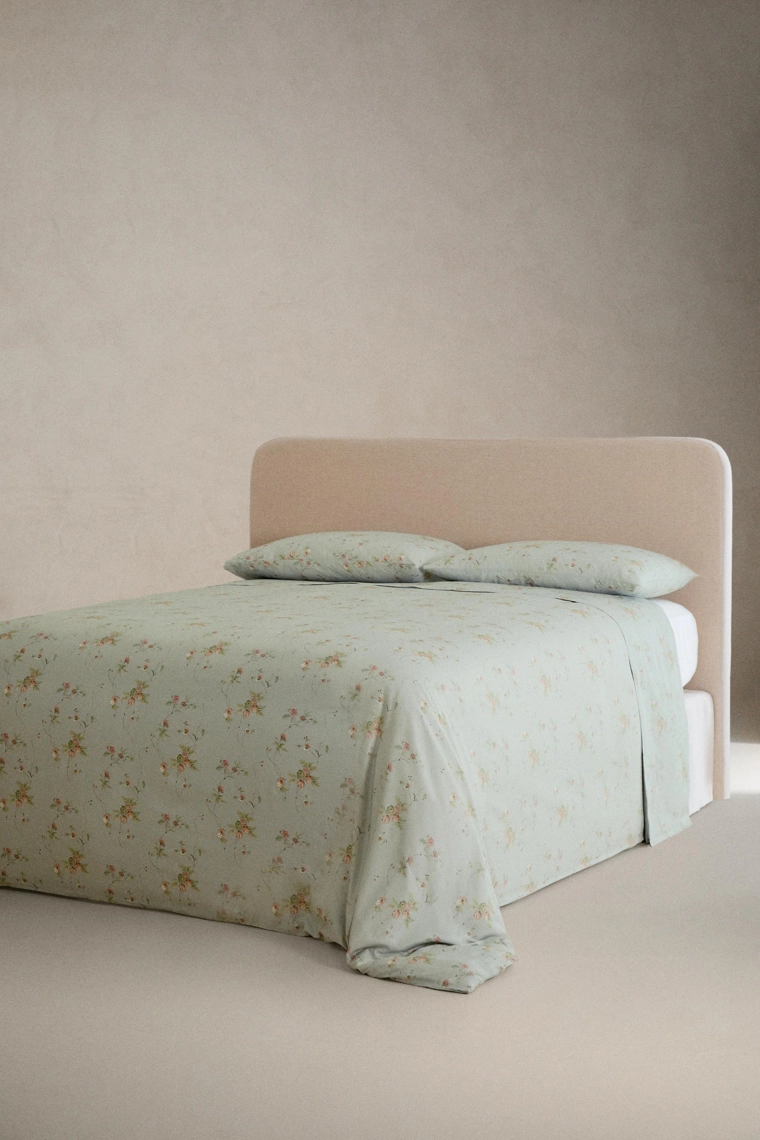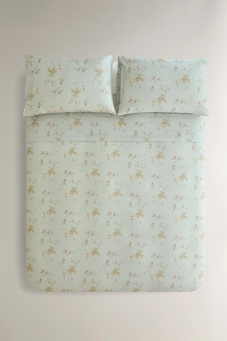 capa de edredao de cetim com ramos florais 300 fios Blue / Green | 6153/088/445