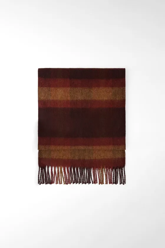 Клетчатый шарф с бахромой Burgundy | 9967/002/681