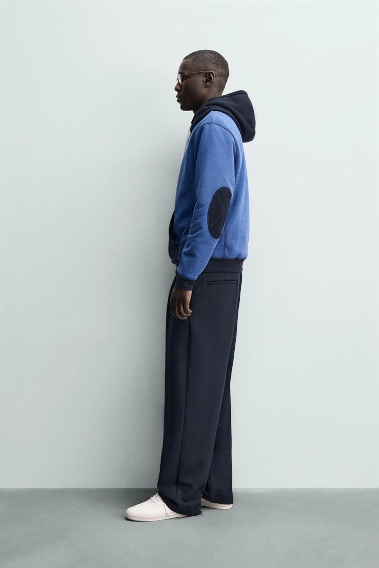 Худи в стиле колор-блок с капюшоном и вафельным узором