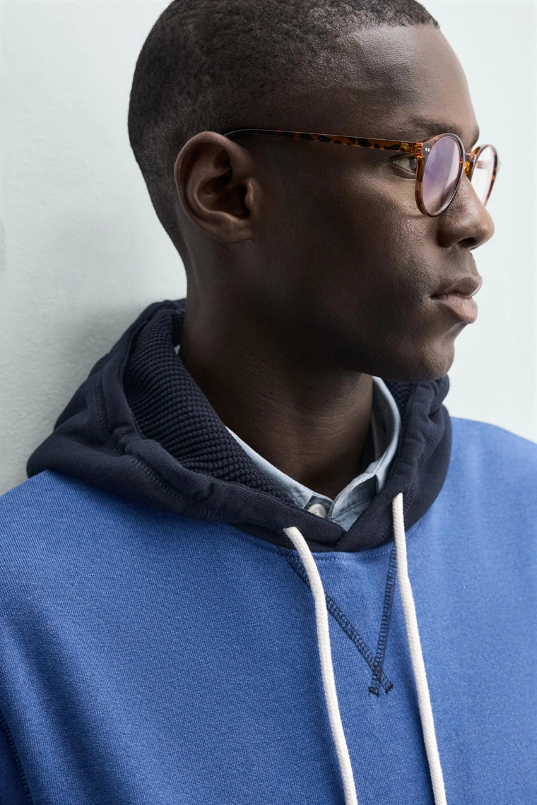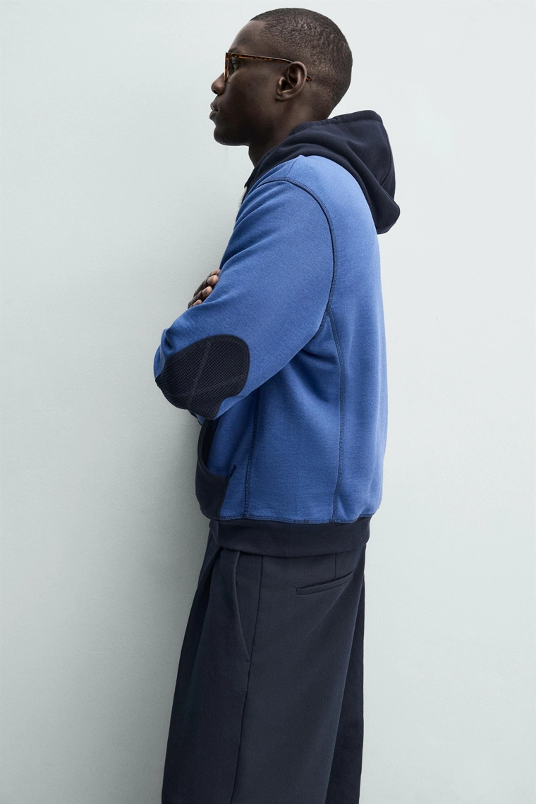 Худи в стиле колор-блок с капюшоном и вафельным узором Blue | 4092/441/400