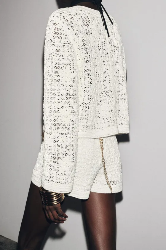 Шорты из кружева кроше Oyster-white | 8779/182/251