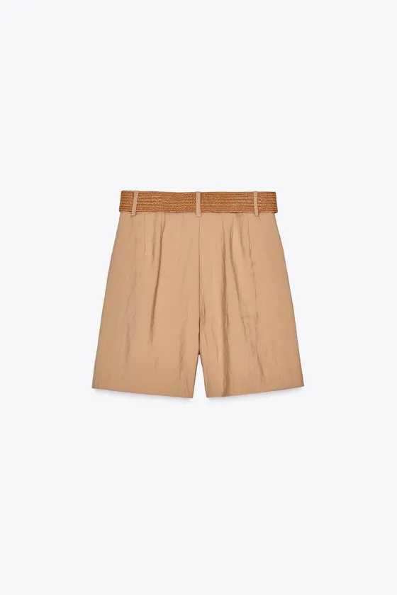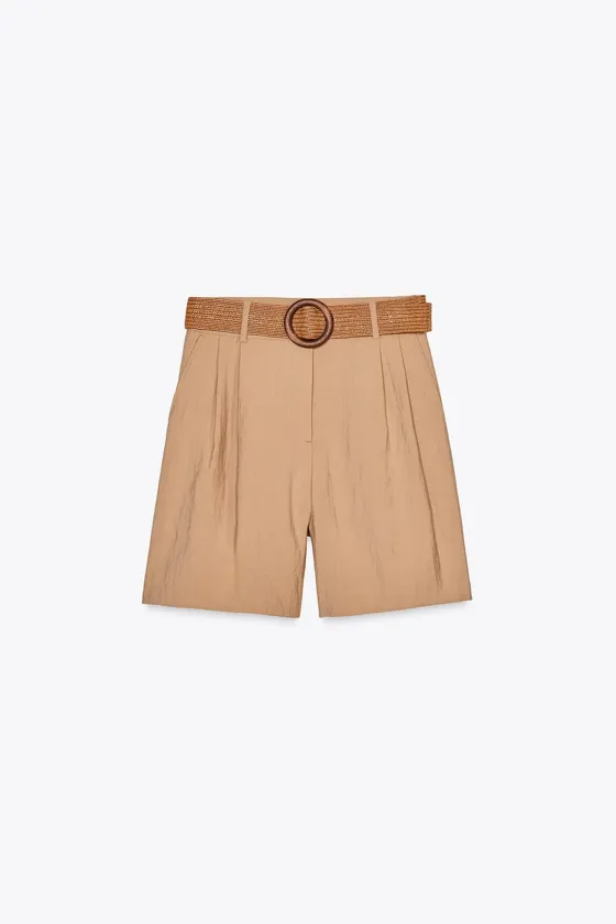 Шорты с ремнем и защипами Mid-camel | 8372/342/756