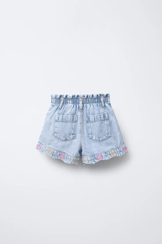 Джинсовые шорты с цветочной вышивкой Light blue | 8574/538/406