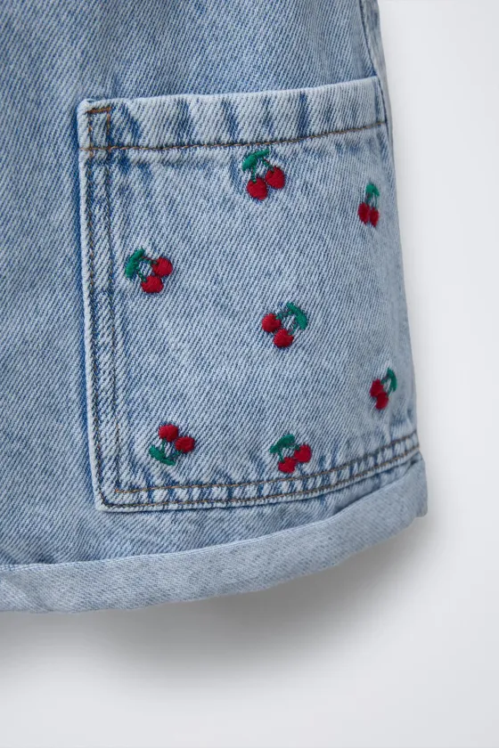 Джинсовый комбинезон с вышивкой «вишня» Light blue | 4441/746/406