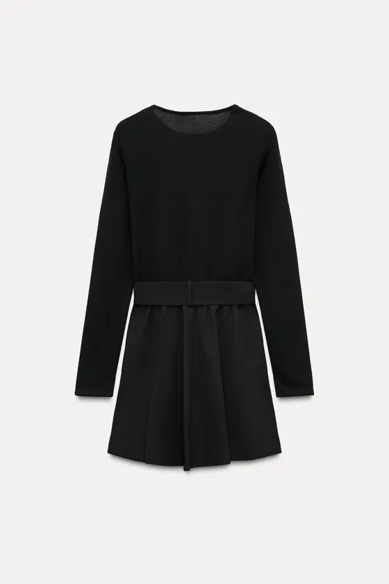 Платье с поясом и контрастными деталями Black | 0264/261/800
