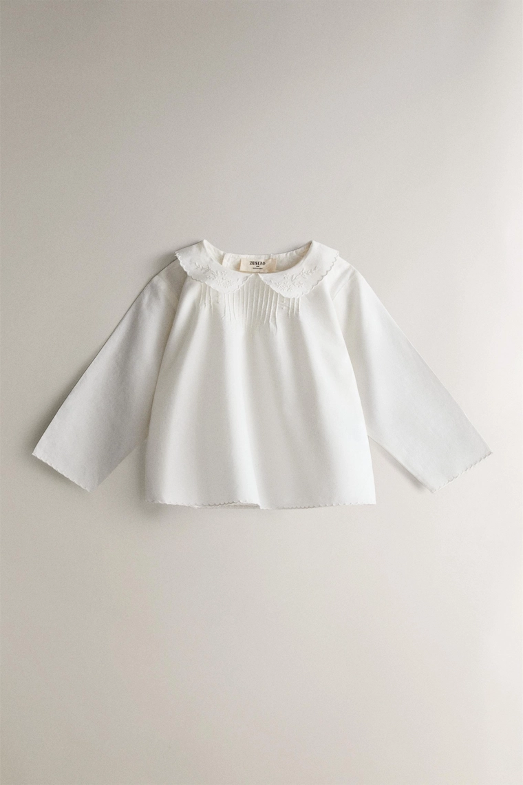 Embroidered baby shirt Oyster-white | 9690/580/251