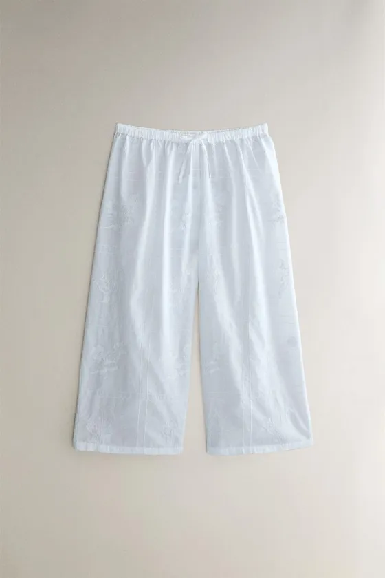 Брюки из хлопка с объемной вышивкой White | 8154/122/250