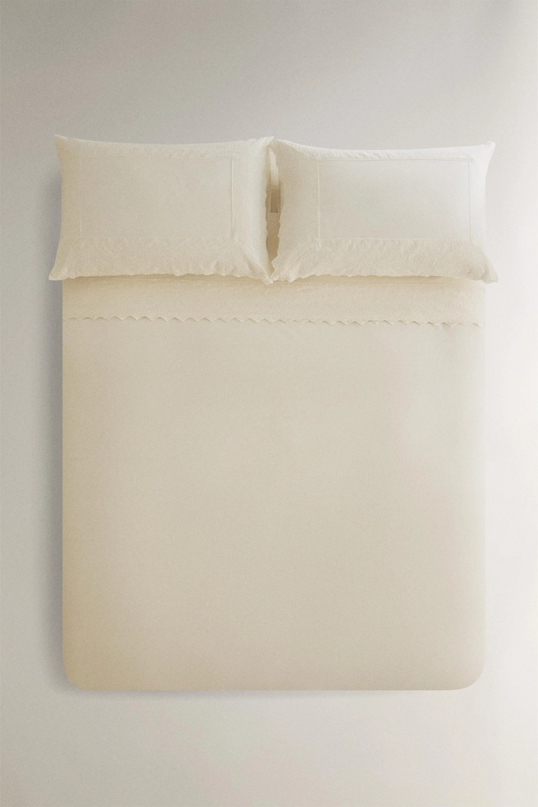 Embroidered percale duvet cover (200 thread count) Ecru | 5193/088/712