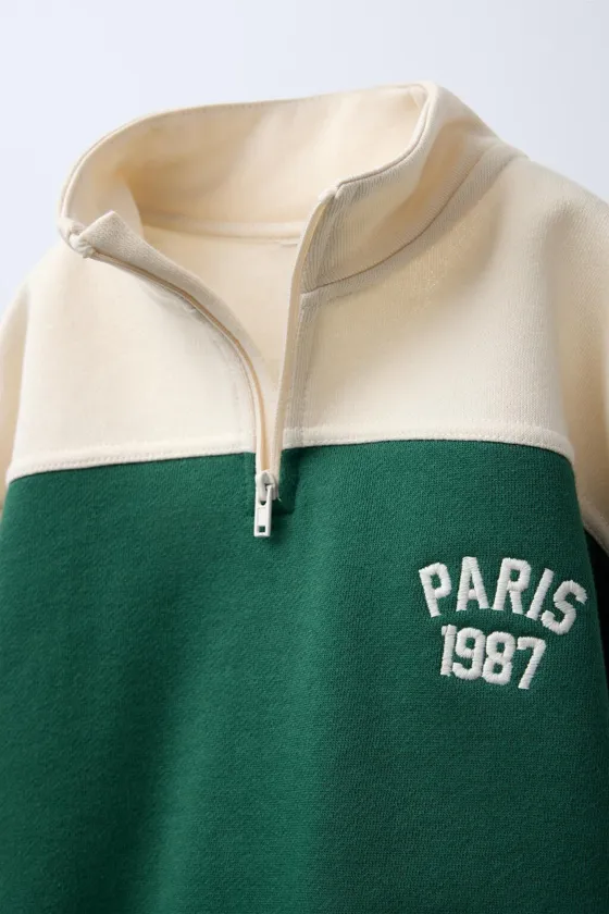 Толстовка с вышитой надписью и застежкой-молнией Green / Ecru | 5431/527/098