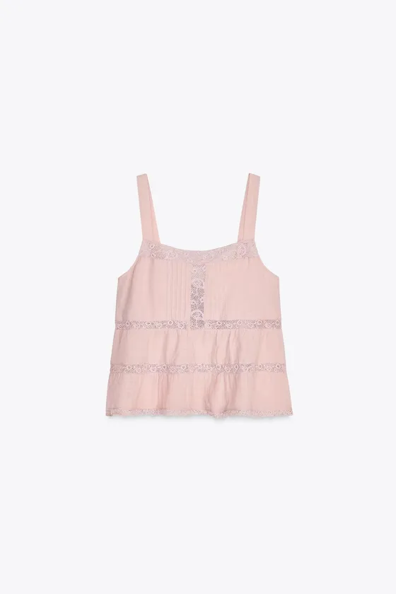 Топ из шифона с бретелями и вышивкой Pink | 0881/025/620