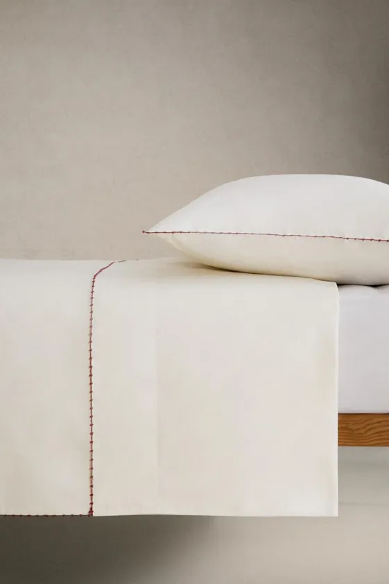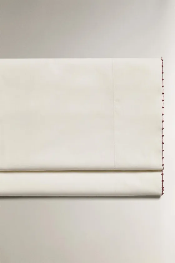Простынь на резинке с вышитой отделкой White / Maroon | 8610/089/062