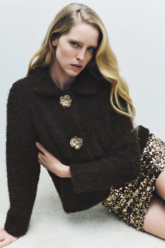 Кардиган из искусственного меха с пуговицами в виде цветов Chocolate | 9598/249/717