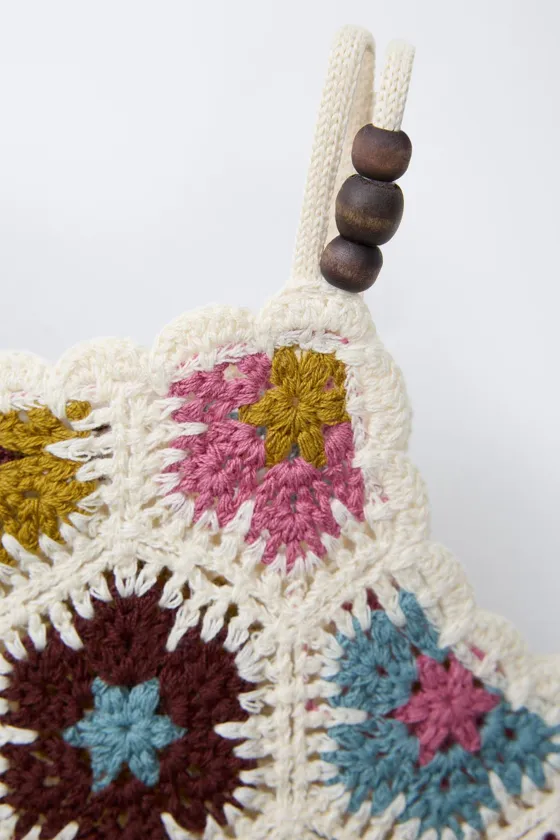 Топ из кружева кроше с цветами и бусинами Multicoloured | 2756/512/330