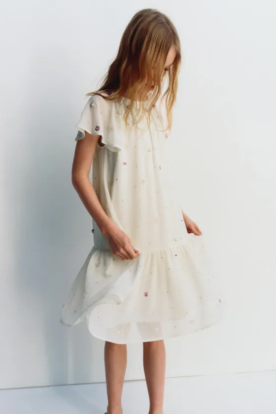 Платье с цветами из бисера Vanilla | 7521/607/727