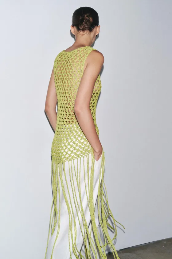 Трикотажный топ из кружева кроше с бахромой Lime | 3653/010/520