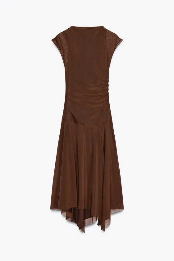 Платье из полупрозрачной ткани со сборками Brown | 5039/311/700