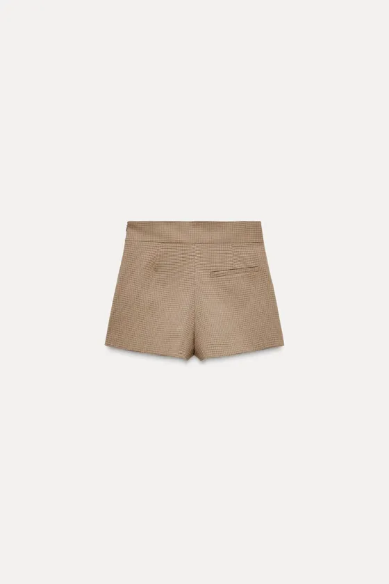 Шорты в клетку с высокой посадкой Beige-brown | 3067/410/083