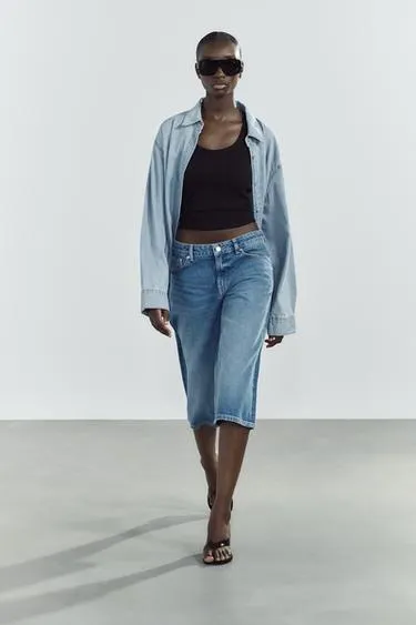 Джинсовые шорты TRF с высокой посадкой MOM FIT и косой застежкой