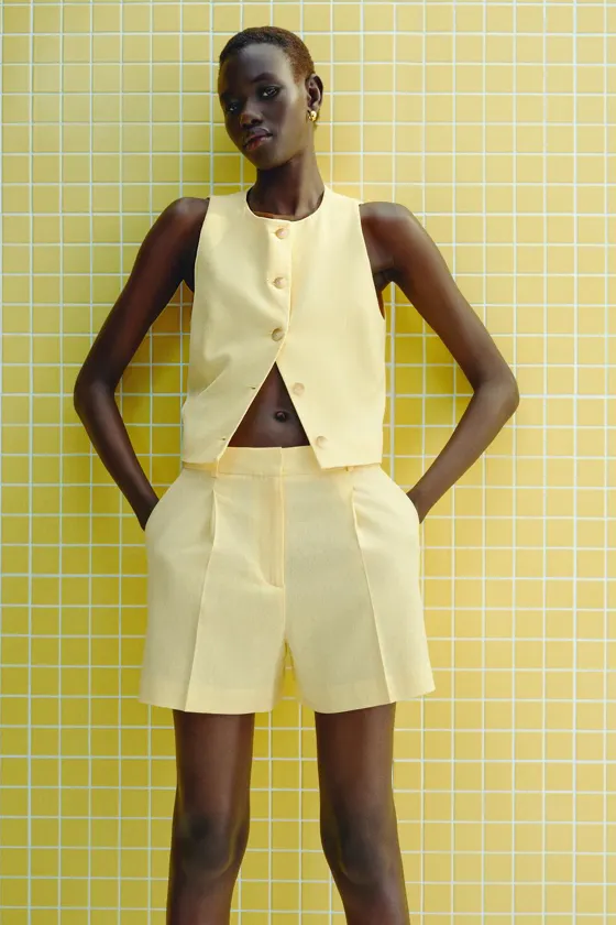 Шорты из смесового льна с высокой посадкой Yellow | 2765/332/300