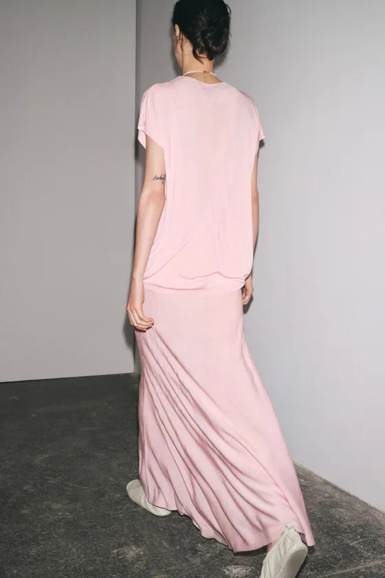 Трикотажная юбка миди Pale pink | 2142/069/622