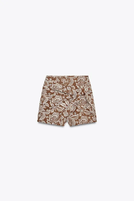 Юбка-шорты с вышивкой и узлом Brown / Ecru | 8073/171/087