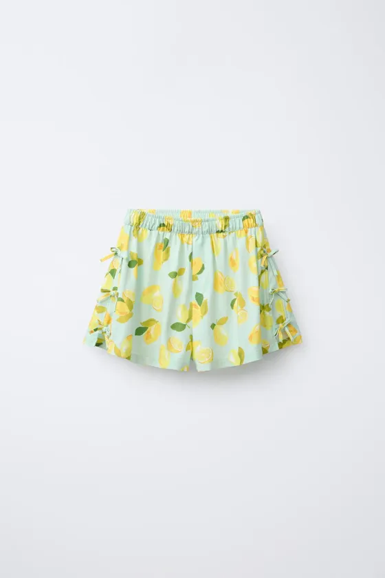 Шорты из смесового льна с лимонным принтом Turquoise | 1492/540/402