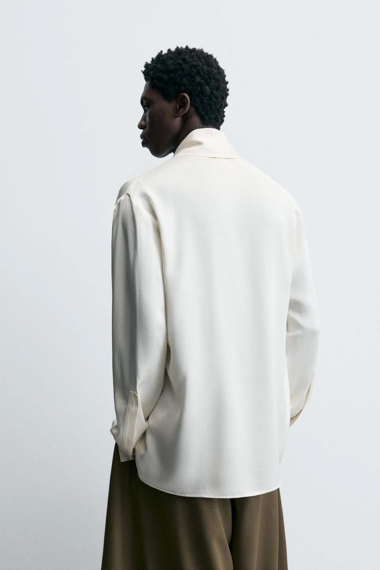 Limited edition flowing shawl collar shirt Oyster-white | 4028/340/251