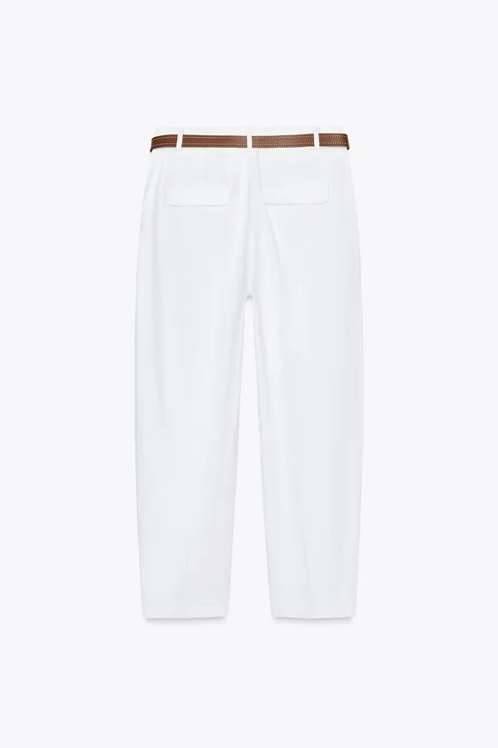 Брюки прямого кроя из смесового льна с ремнем Oyster-white | 2753/128/251