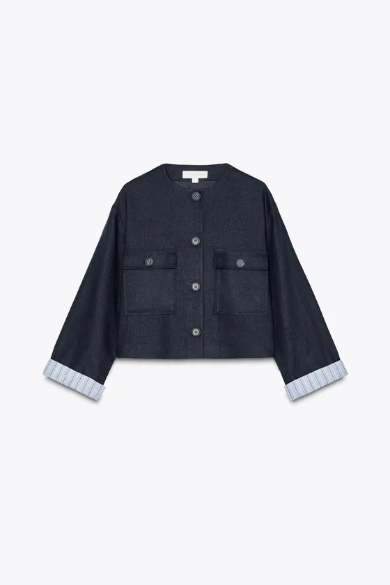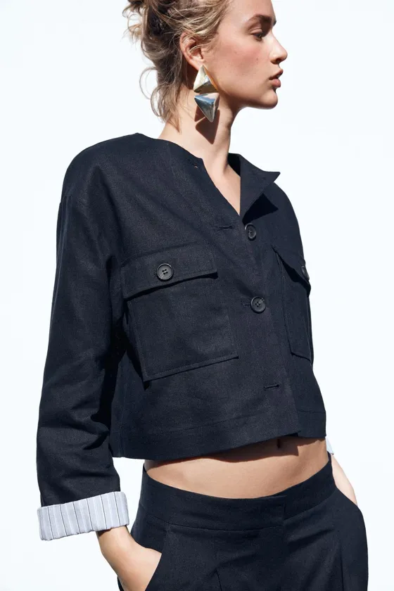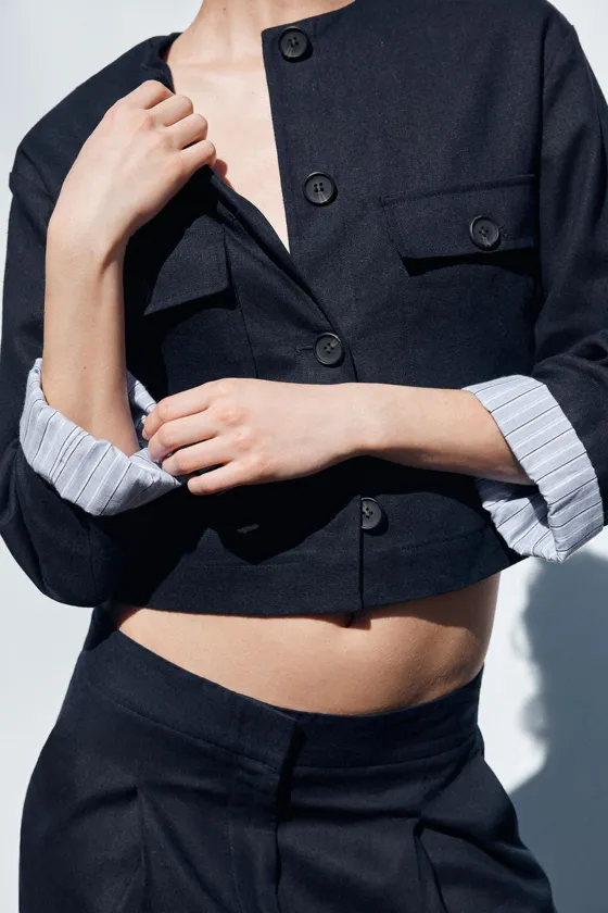Укороченная куртка из смесового льна Navy blue | 2753/435/401