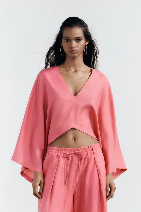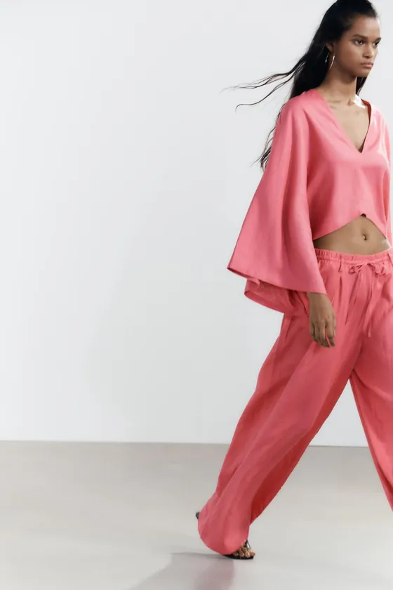 Брюки палаццо из смесового льна Bubble gum | 5427/419/636