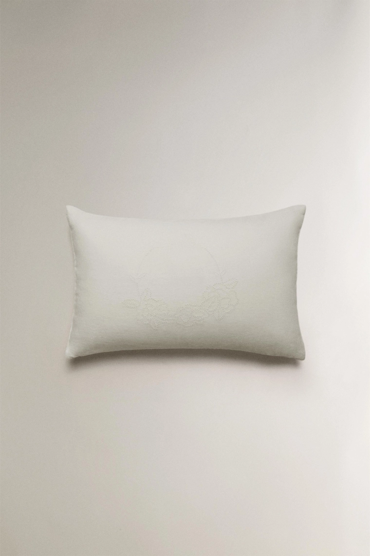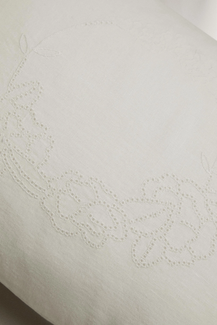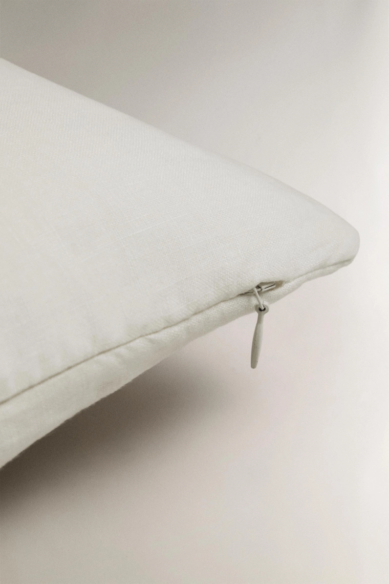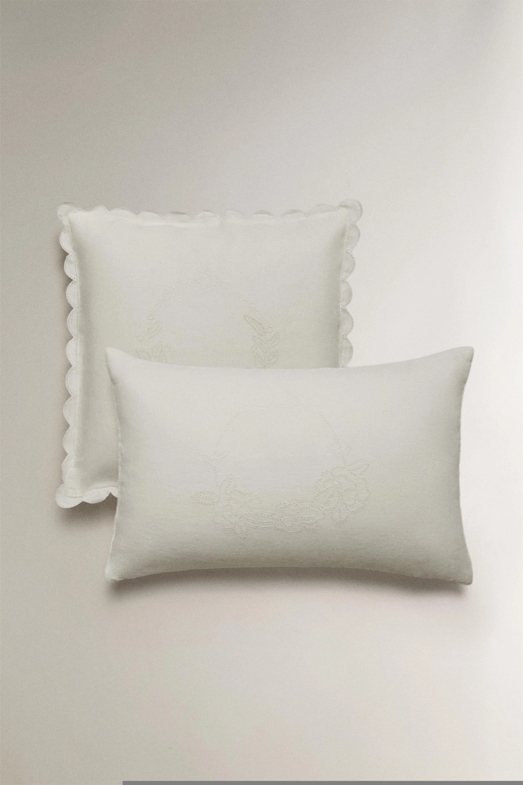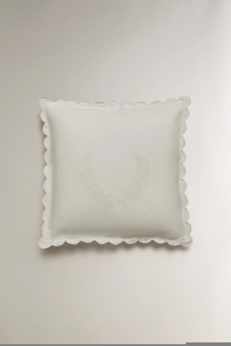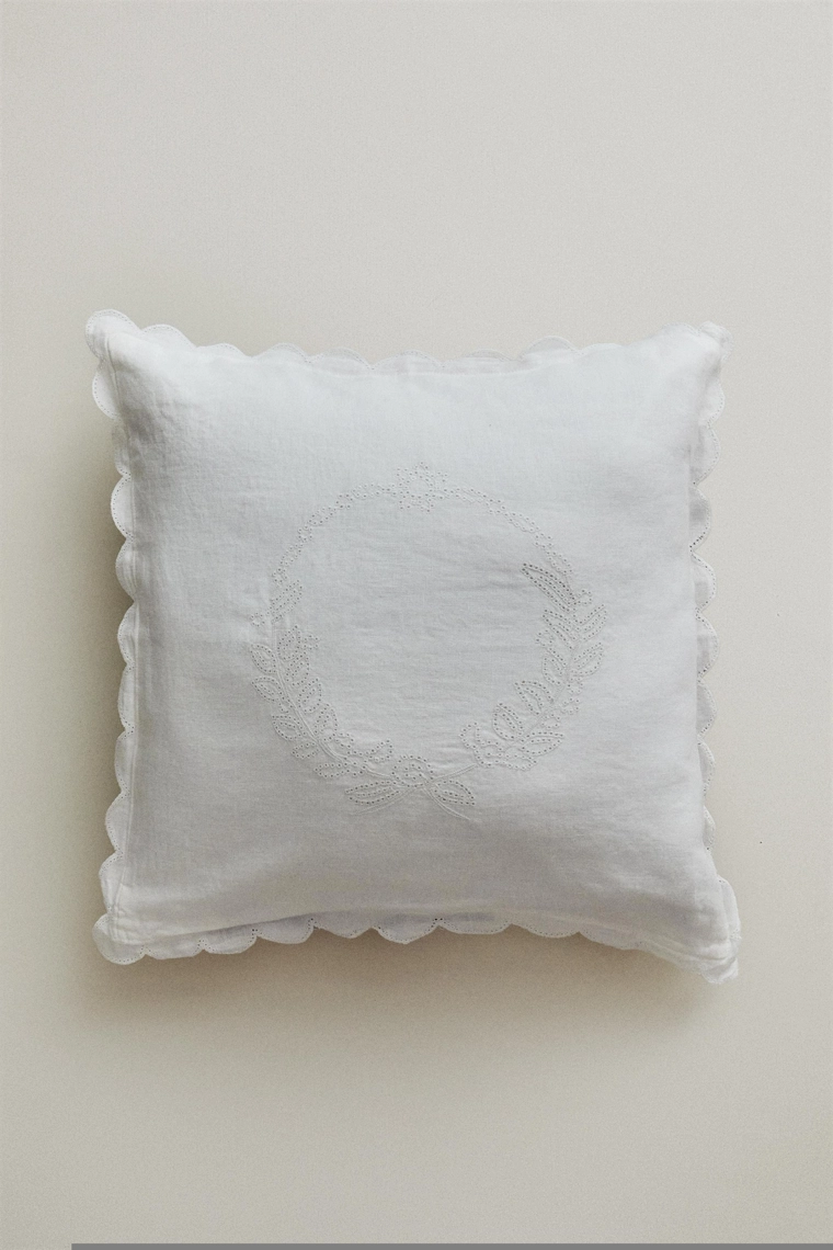 Linen cushion with openwork edge
