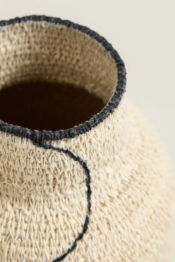 Низкая ваза из морской травы с линией Ecru / Black | 3383/049/070