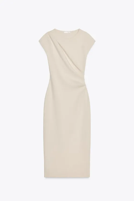 Платье миди со сборками сбоку Ecru | 4174/189/712