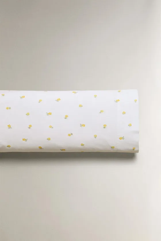 Наволочка из хлопка с принтом мимозы Oyster-white | 9151/091/251