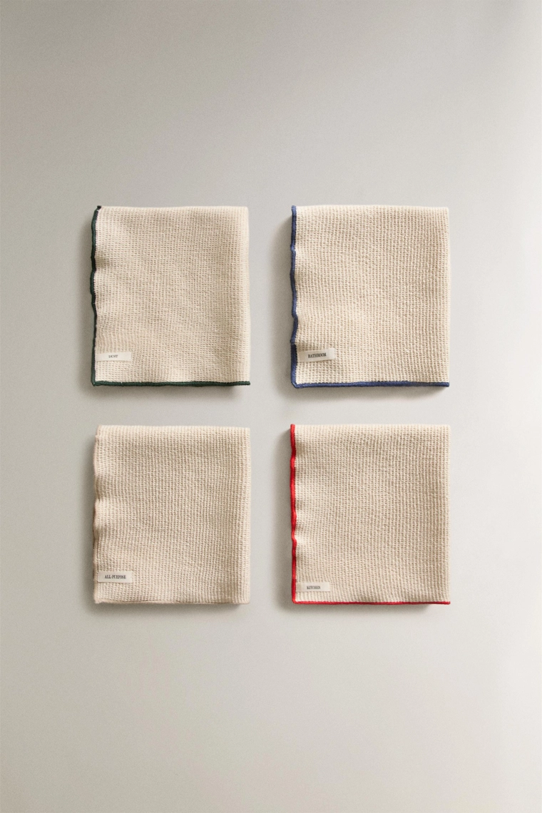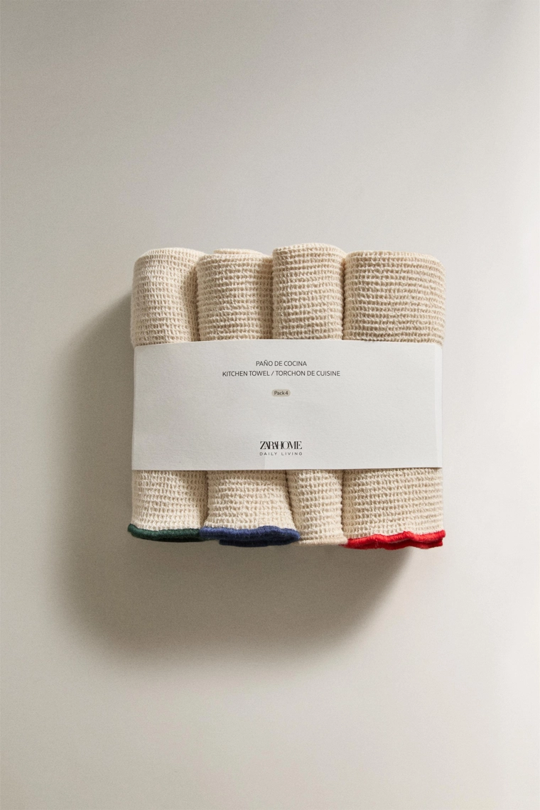 Pack of waffle-knit tea towels (pack of 4) Cream | 2270/026/733