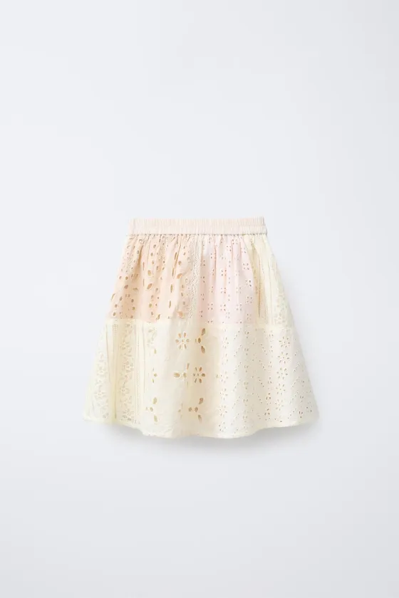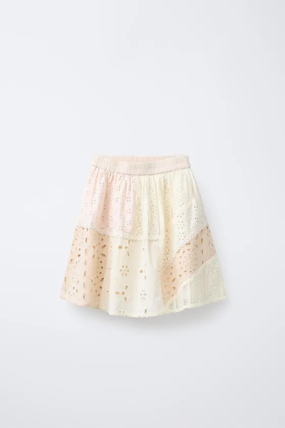 Юбка в стиле пэчворк с ажурной вышивкой Beige-pink | 4493/620/942