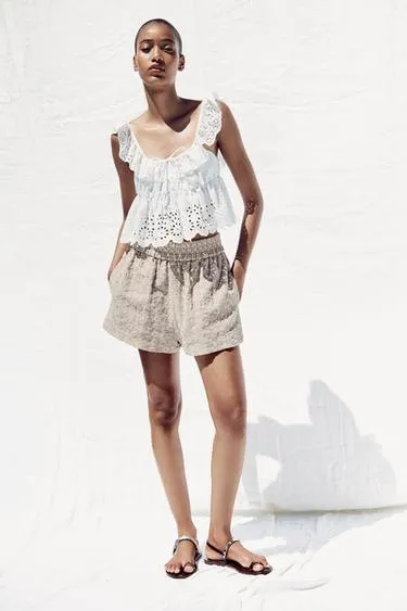Шорты с ажурной вышивкой Beige | 8073/286/983