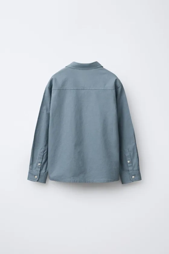 Однотонная рубашка из смесового льна Blue | 1437/654/407