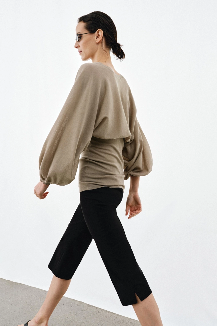 Puff sleeve top with fitted hem