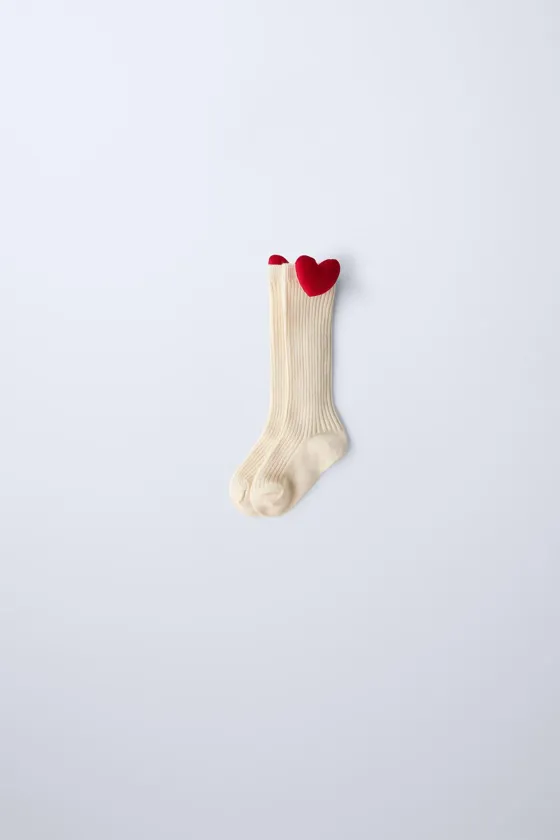 Носки с ребристым узором и аппликацией сердца