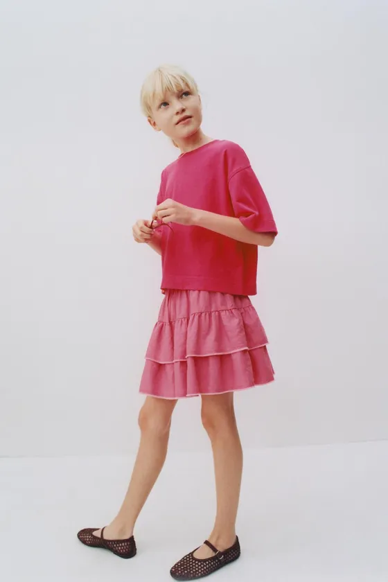 Юбка-шорты из смесового льна с воланами Light fuchsia | 1582/119/657