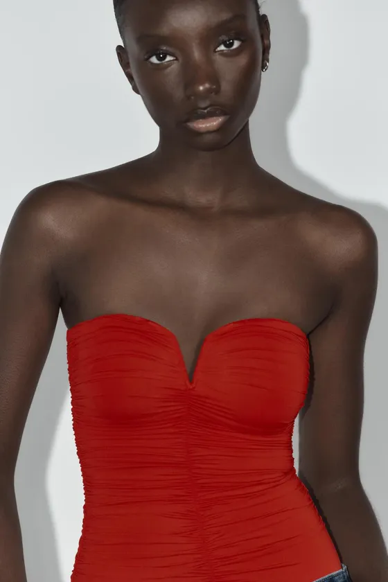 Боди бандо из полиамида со сборками Red | 1026/302/600