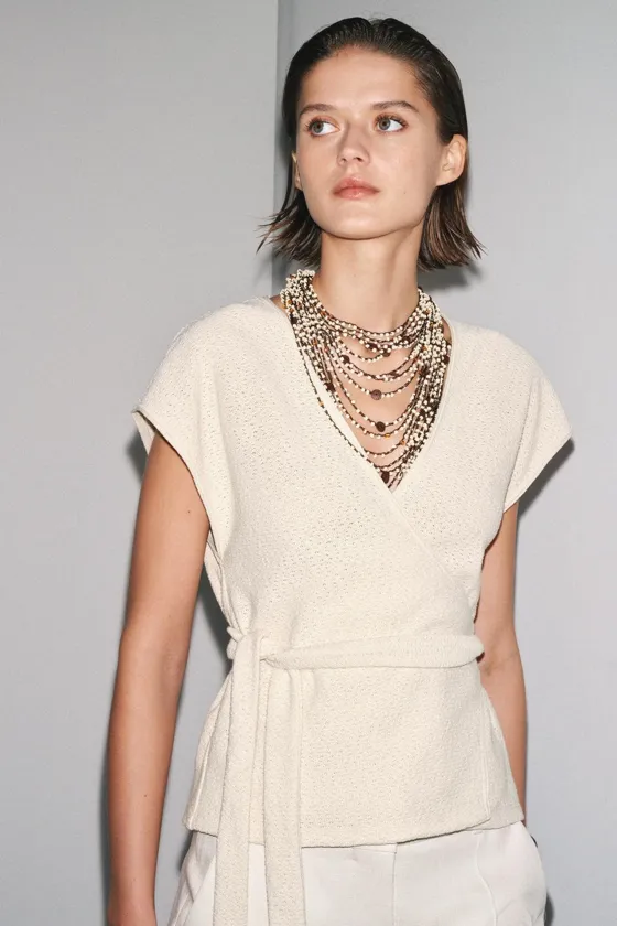 Топ в стиле рустик с запáхом Ecru | 4770/013/712