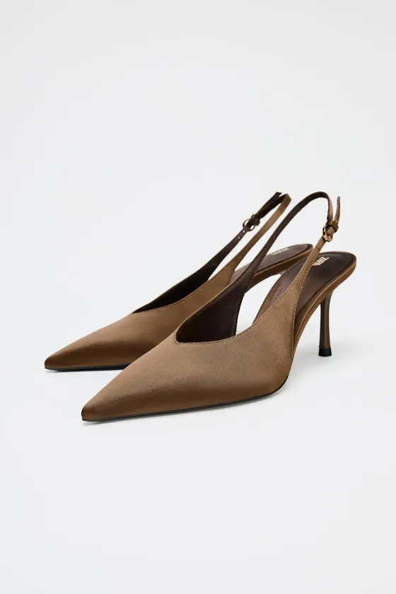 Атласные туфли на высоком каблуке Brown | 3536/510/700